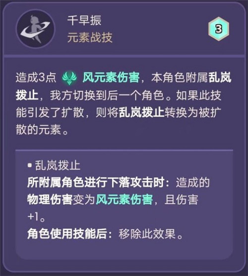 所附属角色进行下落攻击时:造成的物理伤害变为风元素伤害,且伤害+1