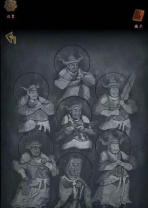 4、放入铜镜按照外面小人顺序得到孝字木牌,放入罚阴司手上托盘里,在赏阴司手上得到判官令,放入踞,进入踬。