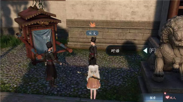 1.到下图处,对宋文使用动作“观察”触发本奇遇任务。如果未触发,就换个位置进行观察,直到触发为止