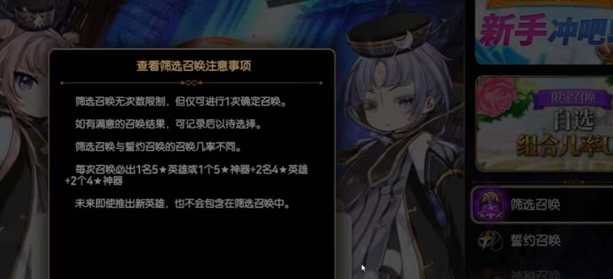 4、总之,筛选召唤活动对于新手玩家是非常不错的一个活动,建议玩家们入手核心角色,对于前期的开荒推图会有很不错的帮助。