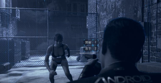6、经过一番打斗后,用枪指着崔西,一番解释过后康纳放走了她们,与汉克的关系提升,案件结束。