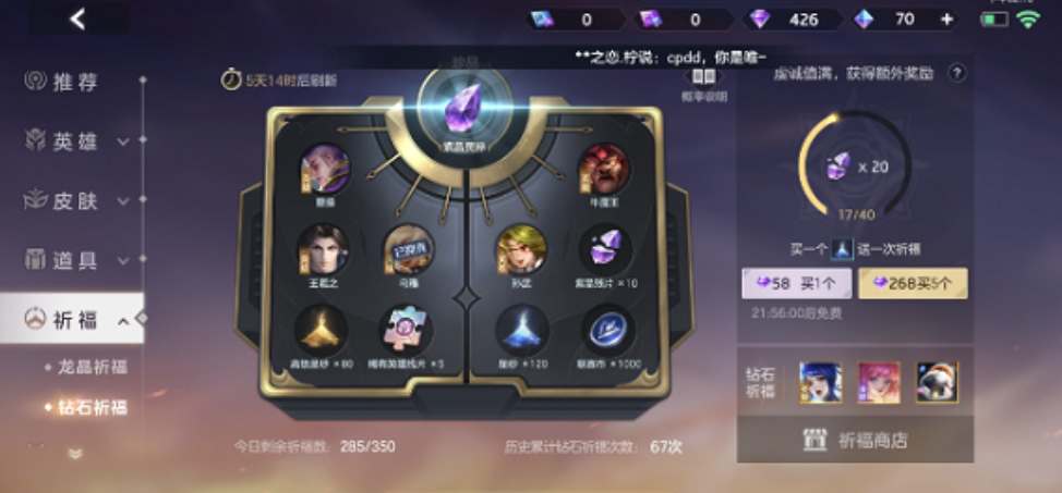 曙光英雄钻石祈福活动怎么参与?钻石祈福是一个抽奖的玩法,奖励包含了很多皮肤和道具。