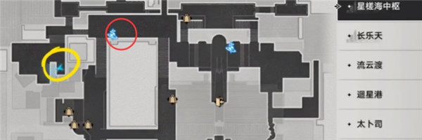 1、玩家可以传送到星槎海神中枢左上方的红色圈圈处。