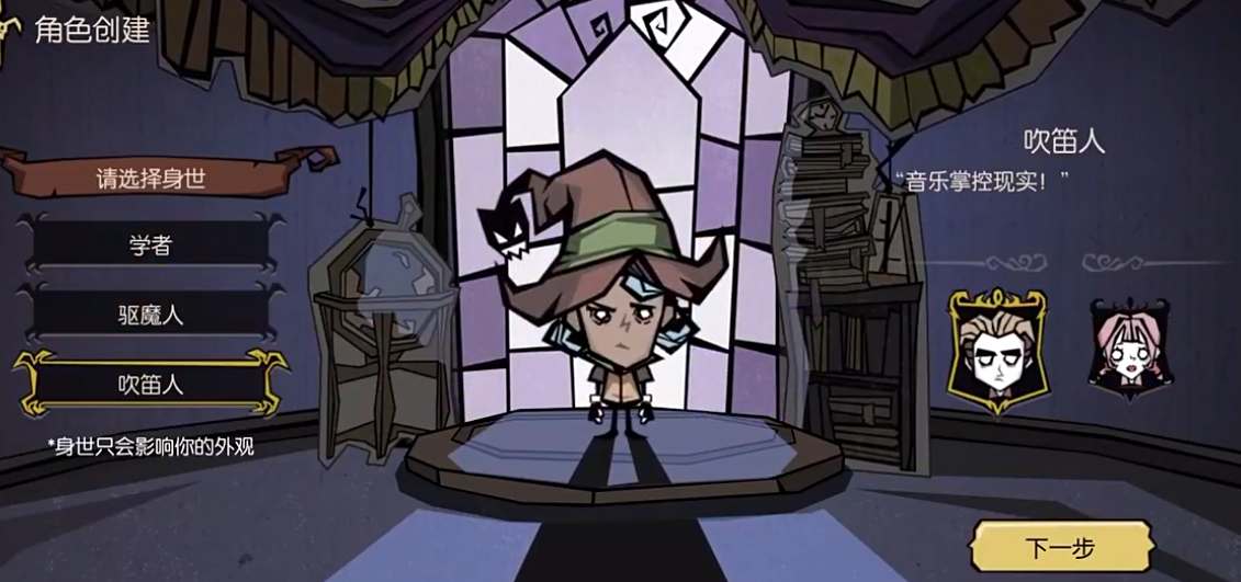 饥荒新家园角色身世应该如何选择?不同的身世对游戏有什么影响?玩家创建角色的时候可以选择角色的身世,目前有吹笛人、学者、驱魔人三种。