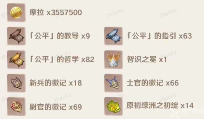 新兵的徽记x18、士官的徽记x66、尉官的徽记x69、原初绿洲之初绽x14