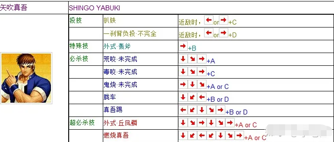 以上便是小编为大家带来的拳皇97矢吹真吾出招表的所有内容了,希望可以帮助到大家更好的使用矢吹真吾这个角色。