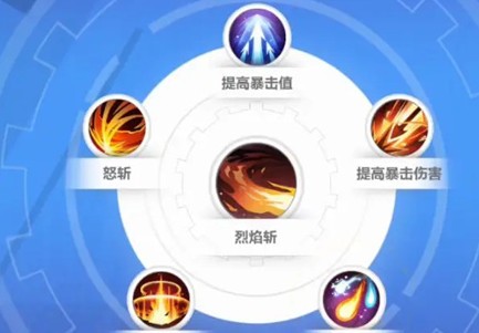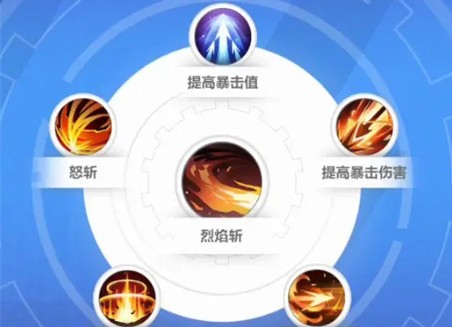 烈焰斩-提高暴击值-怒斩-元素融合-火焰爆发-附加火焰伤害/提高暴击伤害(提高暴击伤害是在拥有战意,面板暴击率在35-50%之间带)