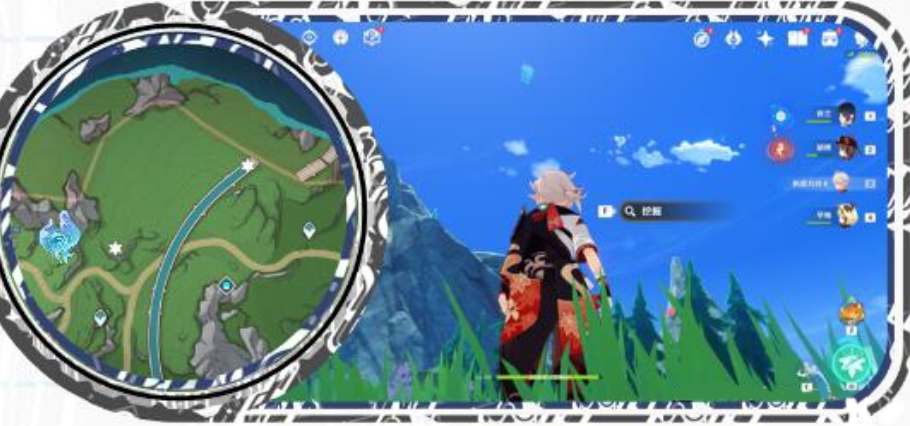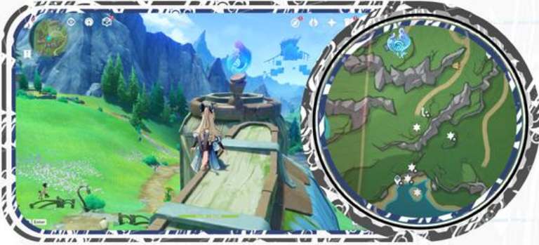 4、第三个水神瞳在花田上方,需要利用风场飞上去。