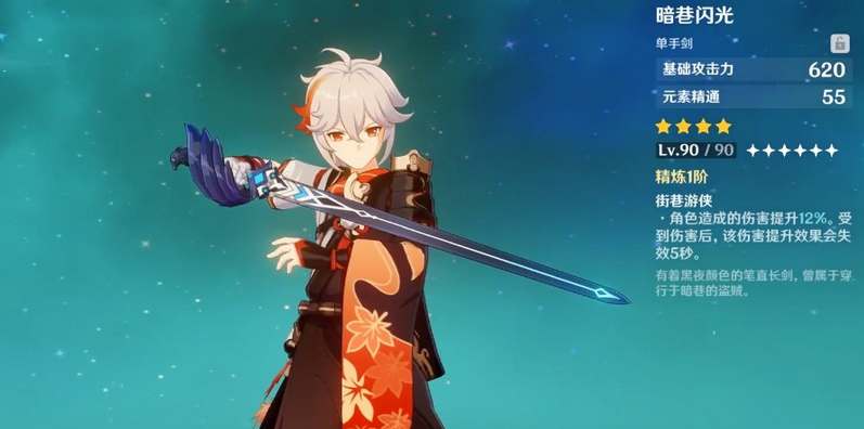 暗巷闪光:面板攻击力和元素精通,但是元素精通的加成较少。