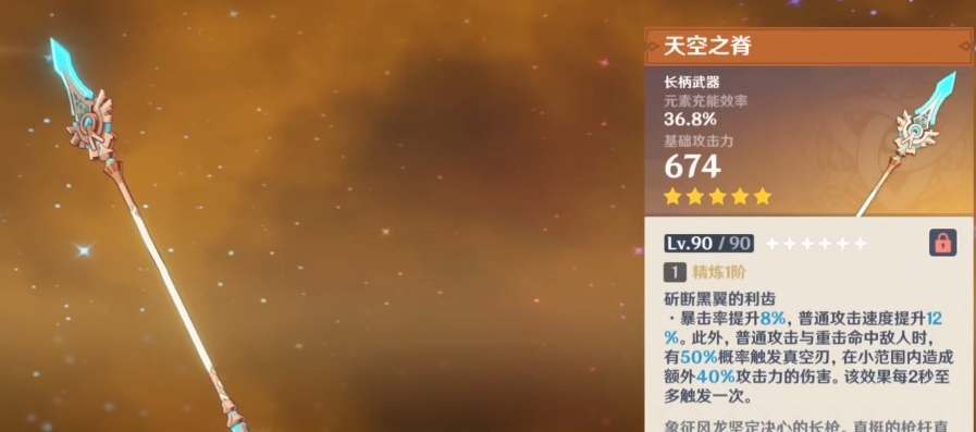 天空之刃:面板属性加成为攻击力和元素充能效率,释放元素爆发还可以提供移速攻速加成,提升输出能力。