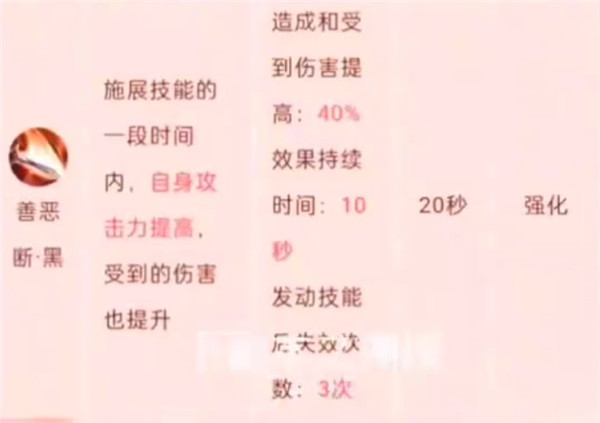 3、该技能施展后一段时间内,自身攻击力提高,受到的伤害也提升。