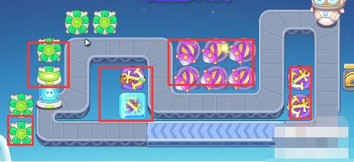 4、第11关中我们还会遇到冰冻兔,要注意给炮塔解冻,不然炮塔就无法攻击了。