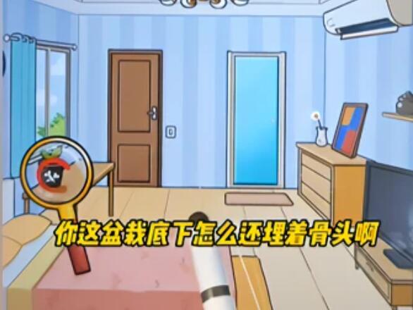 1、使用放大镜可以让玩家在花盆当中看到里面埋藏的骨头。