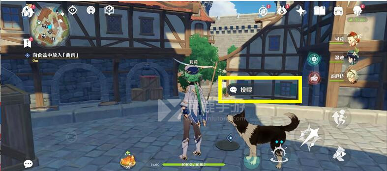 3、到布兰琪的后面,走近狗盆,点击投喂;