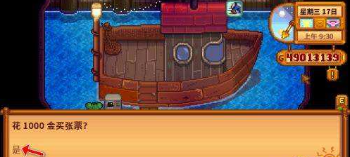 1、升级到1.5版本之后,打开威力鱼店后门买票前往姜岛。