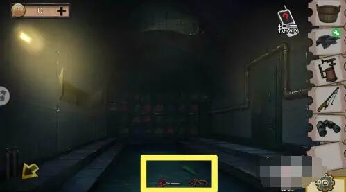 1、首先我们切男主视角在第四个下水道捡起地上女主扔下的东西,把绳子和篮子组合,剪子以及防水布组合。