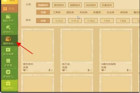 1、首先我们打开我的世界启动器,点击左侧组件中心。