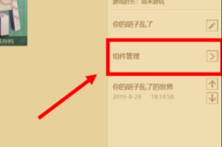 6、然后我们点击创建的世界,再点击右侧工具栏的组件管理。