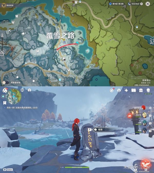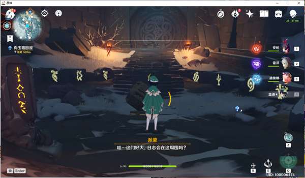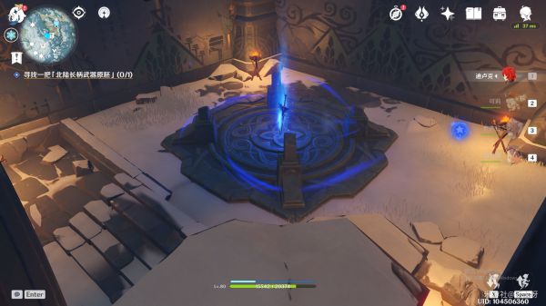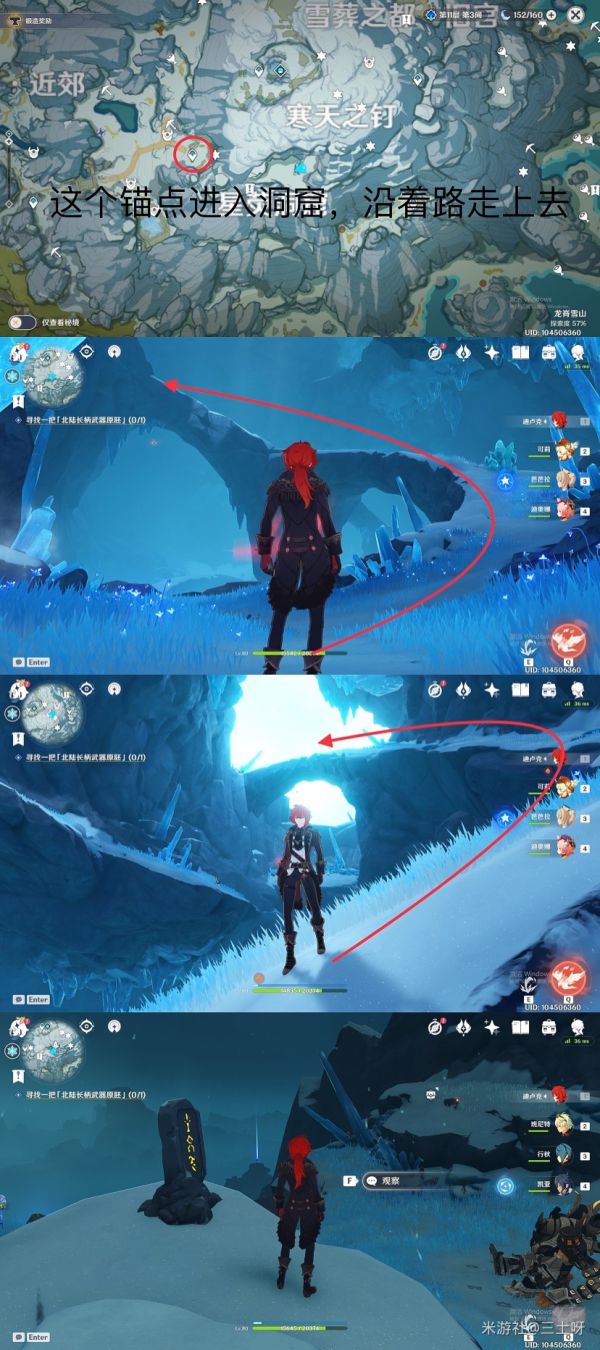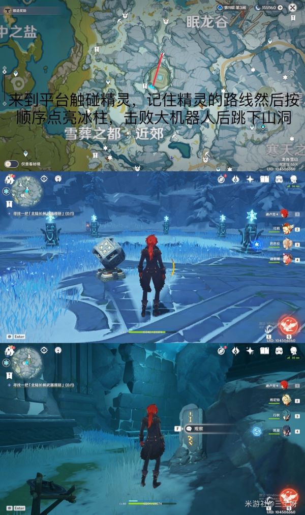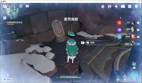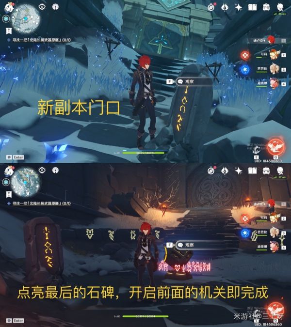 之后,我们就可以传送至神像,根据支线任务提示,在同一层位置的前方还有一个山洞,从这个山洞向里走便可来到我们最终的目的地,雪山顶部。之后我们只需完成任务要求,便可解锁此次更新的新副本所在地,以及最后的第八块石碑