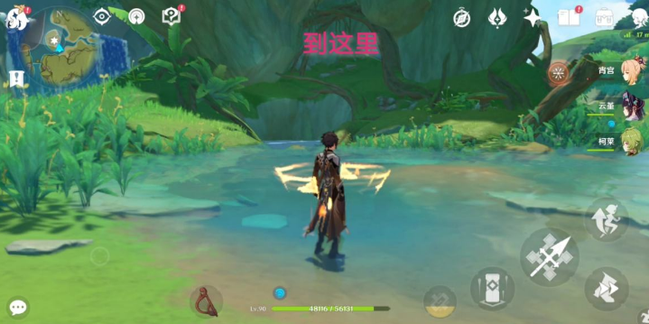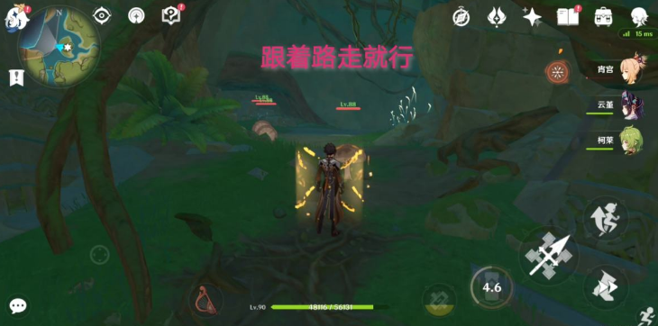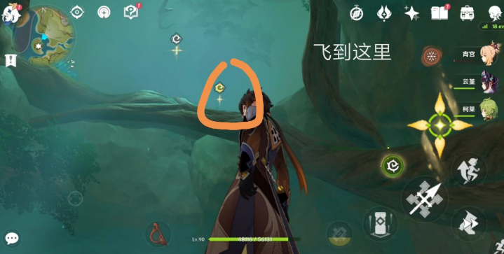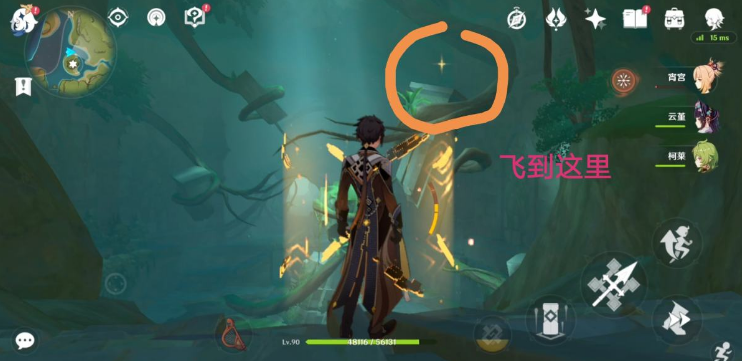 4、一直跟着走,记得带好任务道具琴。使用四叶印飞上去。