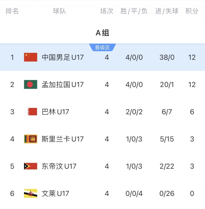 中国和孟加拉国前4轮均全胜,中国有38个净胜球,孟加拉国19个净胜球。两队今晚直接交手,根据出线规则,预选赛只有小组第一能晋级明年的U17亚洲杯。同分情况下优先比较相互战绩、相互净胜球、相互进球数、小组净胜球、小组总进球数。