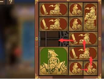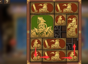 3、之后再将左下方的长方形向右移动,将军向下移动,将军上面的长方形也向下移动,右上角的长方形向左移动,其余右边的图形全部向上移动。