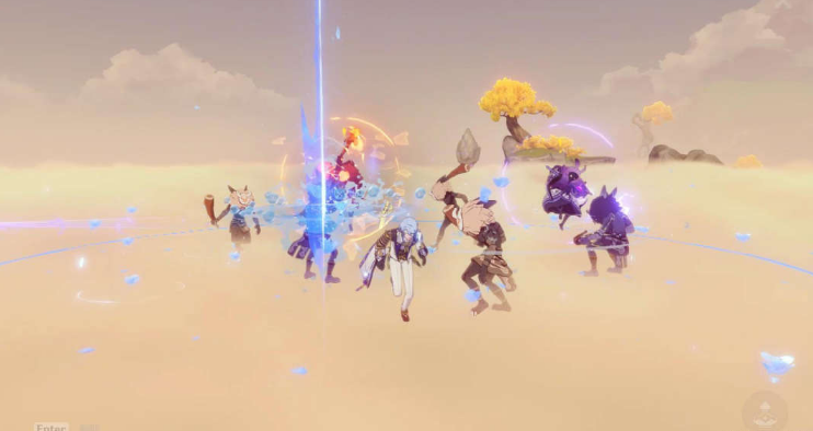 3、第一波法师,香菱QE然后拍照;第二波绫人Q然后拍照;第三波夜兰Q然后拍照。血量不足就绫人夜兰Q后迪奥娜Q。