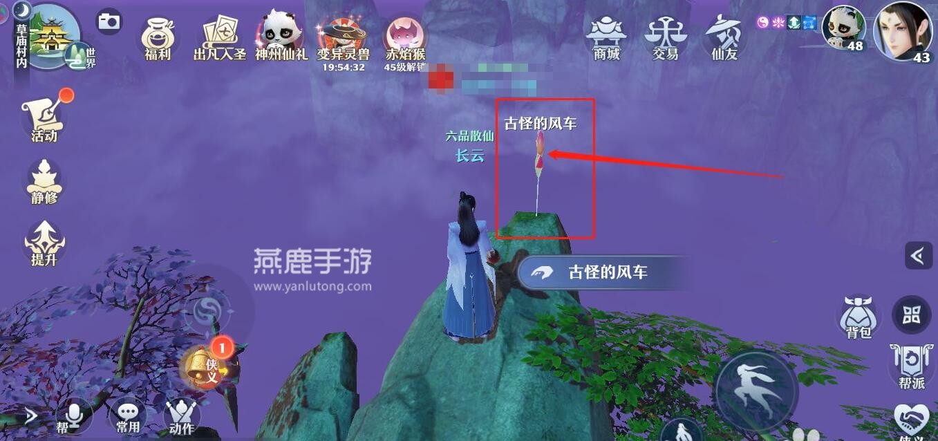 2、然后可以看到石头上面有个古怪的风车,靠近点击;