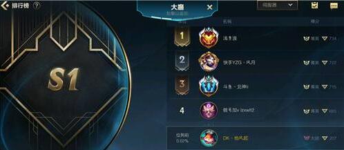 1、段位达到超凡大师后,系统根据胜点来排名,如果胜点高,进入了大区500强。
