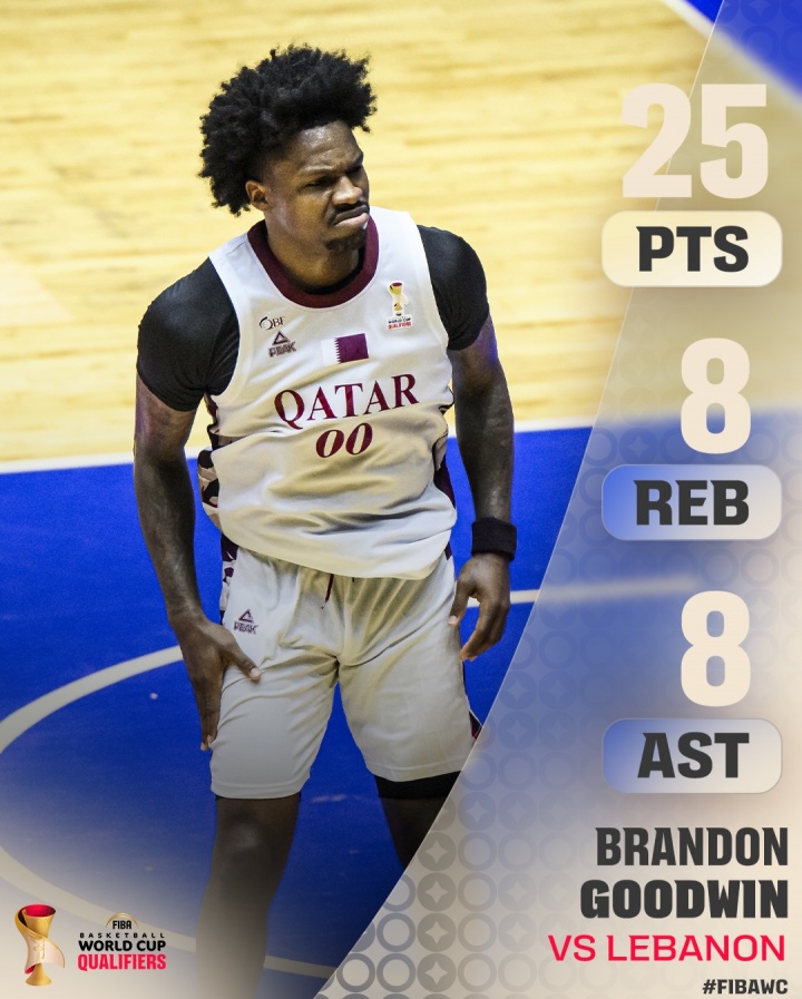 此役,卡塔尔归化后卫、上海外援布兰登·古德温表现出彩,他上场36分56秒15投9中,三分6中2、罚球8中5,砍下25分8篮板8助攻2抢断0失误。而在黎巴嫩这边,核心球员阿拉基上阵33分45秒13投7中,三分5中1、罚球6中6,拿到21分3篮板8助攻1抢断。