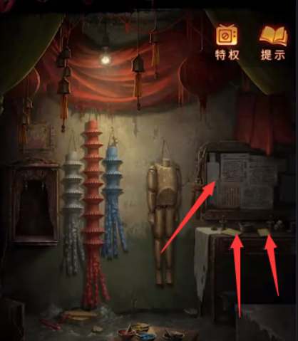 10、从房间出来,两饰品放在右下角的红色瓶子上,需要完成小游戏(可以直接跳过)得到刀币;