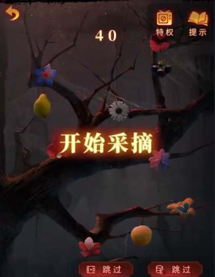 24、按照:硬壳水果→瓜果→辛辣之物→黄汁水果→浆果的顺序来点击即可完成小游戏,拾取水果后再拾取树上的剪刀;