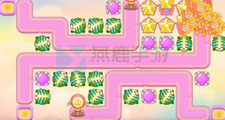 7、具体炮塔如下,主要是星星和鱼刺,外加几个魔法球。