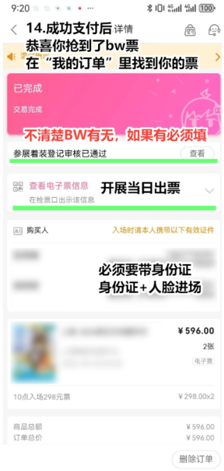 9. 购票成功后再我的订单里面可以找到票,入场必须带证件哈;