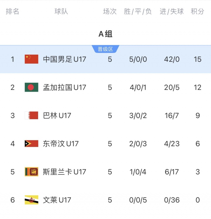 直播吧12月01日讯 2026年U17亚预赛落幕,中国U16国少五战全胜、进42球0失球,以小组第一晋级正赛。