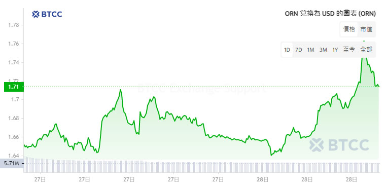 ORN代币固定总量1亿枚,当前流通量约29%。代币用途包括: