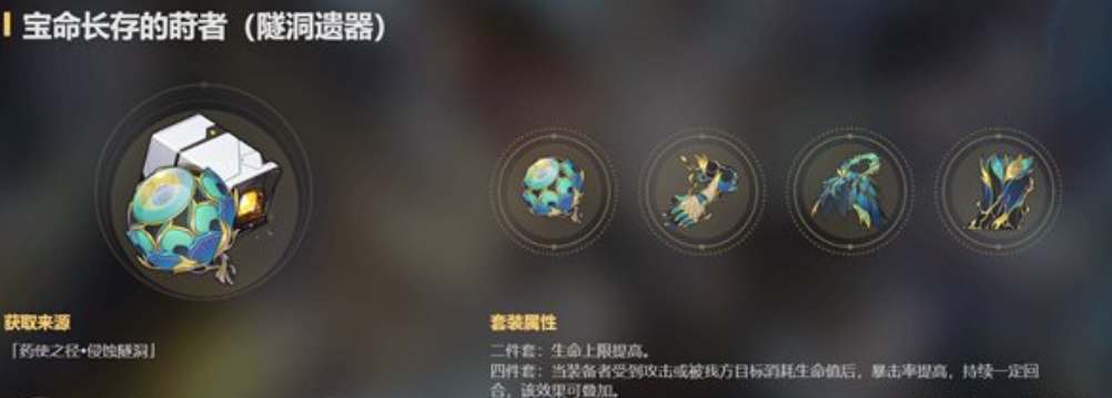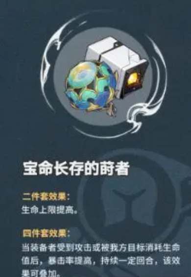 4、宝命长存的莳者遗器效果:2件套提升12%生命上限,4件套装备者受到攻击或被我方目标消耗生命值后自身暴击率提升8%,持续2回合,最多可叠加2层。