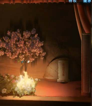13、在仓库的木偶戏台中看小钟的手机获得线索,在戏台上根据木偶戏台的线索如图调整树上蝴蝶的位置与高度,拾取拨浪鼓和靠旗。