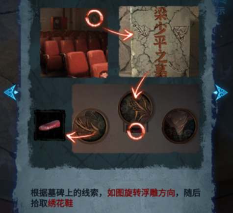 6、根据墓碑上面的线索,在图示位置旋转浮雕机关,打开获得绣花鞋。