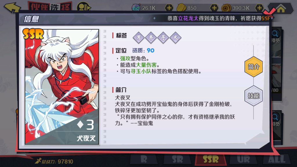 总之,SSR级别的犬夜叉战力非常全面。关于犬夜叉觉醒ssr犬夜叉怎么样的问题,想必各位心中已有了答案。