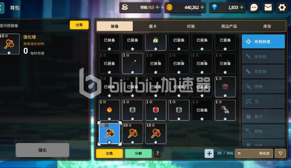当然,在没有强化锤的情况下,玩家们还可以将平时获取到的低等级武器装备丢入强化物品当中。虽然提供的装备经验值较低,但也同样可以有效的去突破装备的等级。