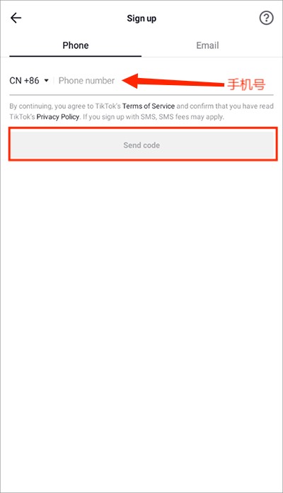 4、输入手机号或邮箱地址,点击“Send code”完成验证