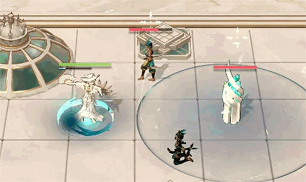 普通攻击与必杀技:普通攻击造成单体物理伤害;必杀技可在指定范围施加破绽标记,并在中心召唤和平雕塑,同时赋予友方捍卫印记。触发清除破绽印记后,会对雕塑周围敌人造成伤害并再次附加破绽。