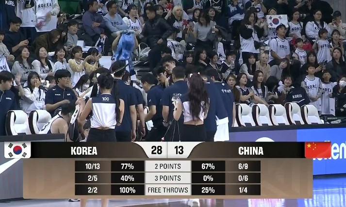 防守形同虚设!韩国队首节70%命中率轰下28分 中国全队5失误