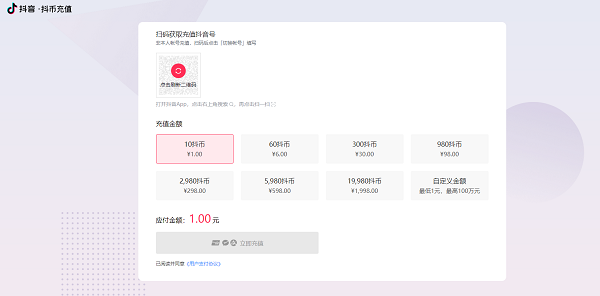 复制上面的地址链接,然后在任意浏览器中打开,就可以直接进入抖音的充值界面,这个充值是苹果安卓通用的。在充值过程中,请务必注意支付安全和核对信息,确保充值过程顺利进行。