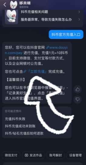 5、然后可以成功进入客服聊天界面,输入【抖音官方充值入口】,然后充值即可。