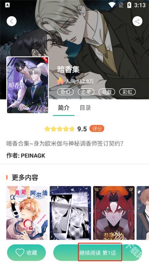 1、进入软件,选择喜欢的漫画,点击继续阅读;