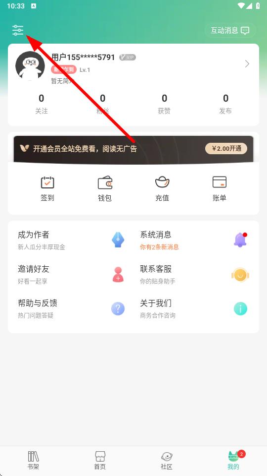进入"浅包"后,点击"我的涯币";"我的书币"和"我的月票"也在这里;