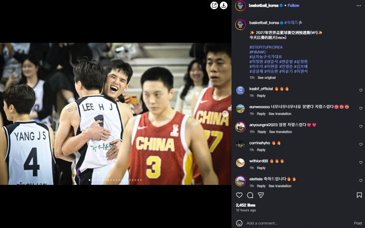 韩国篮协发庆祝照片:胡明轩&张镇麟表情落寞出现在封面当中