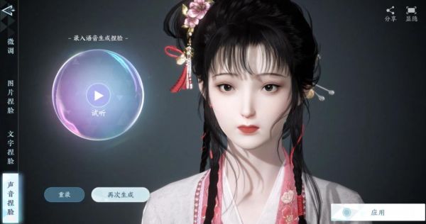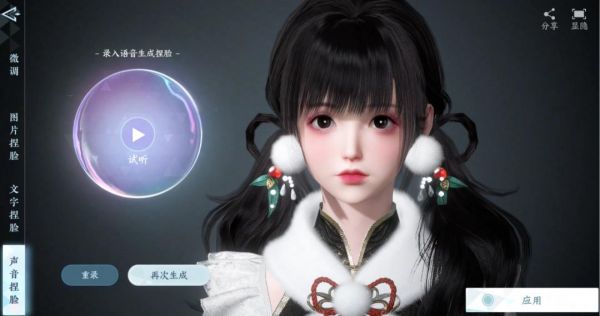 据官方介绍,玩家的音色特质,将成为独一无二的“建模参数”。萌妹音解锁软 fufu 脸颊与灵动大眼,青年音生成利落下颌线: